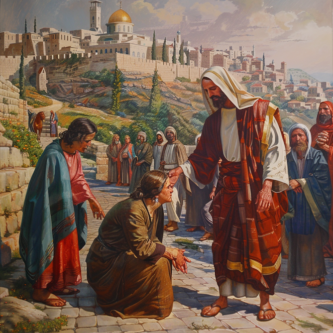 When a woman who had been suffering from bleeding touched the robe of Jesus, she was healed. Jesus knew it and said, "Be of good cheer, daughter; your faith has made you well." The woman was healed immediately. She had such strong faith in Jesus that she believed she would be healed, and after 12 long years, she was indeed healed.